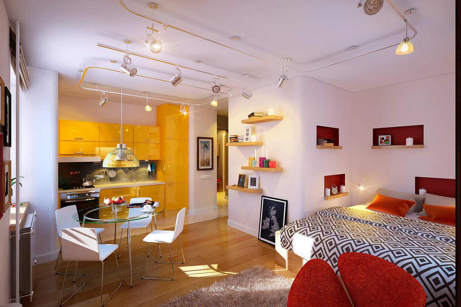 Dans un studio de 23 m², il est possible de vivre 1-3 personnes avec la commodité et le confort. Le problème du manque d'espace libre peut être résolu à l'aide d'un mobilier, d'une décoration intérieure et d'un éclairage correctement sélectionnés.