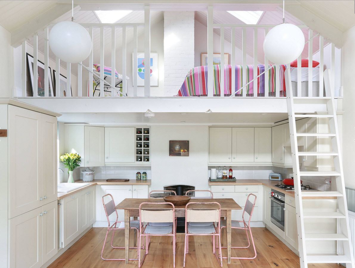 - Lors de l'élaboration d'un projet de conception pour un studio, il convient de tenir compte des besoins des résidents. S'il est équipé pour les étudiants ou les jeunes mariés, un ensemble de meubles de base suffira. Dans le cas d'une famille à part entière avec des enfants vivant dans un tel appartement, il faut penser aux aires de jeux. La solution idéale pour une telle situation serait d'installer un lit superposé, où la zone de couchage sera située au premier étage et une aire de jeux au deuxième étage.