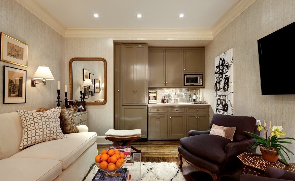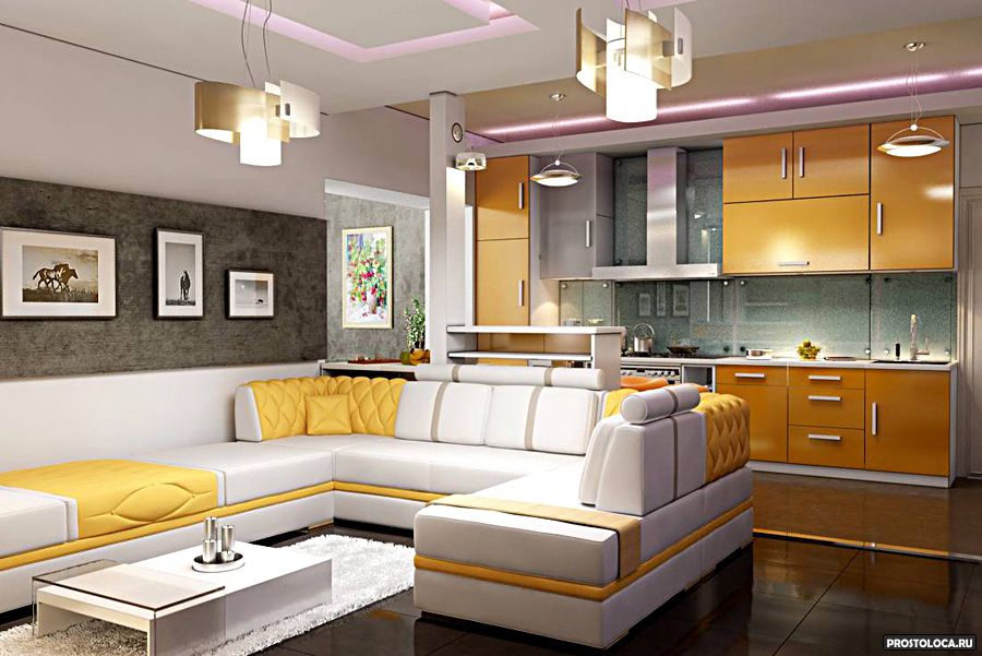 La partie la plus importante de tout l'appartement est le salon. Par conséquent, une attention particulière doit y être portée. Il devrait avoir un canapé et une télévision, le reste de l'intérieur - à volonté et des capacités matérielles.