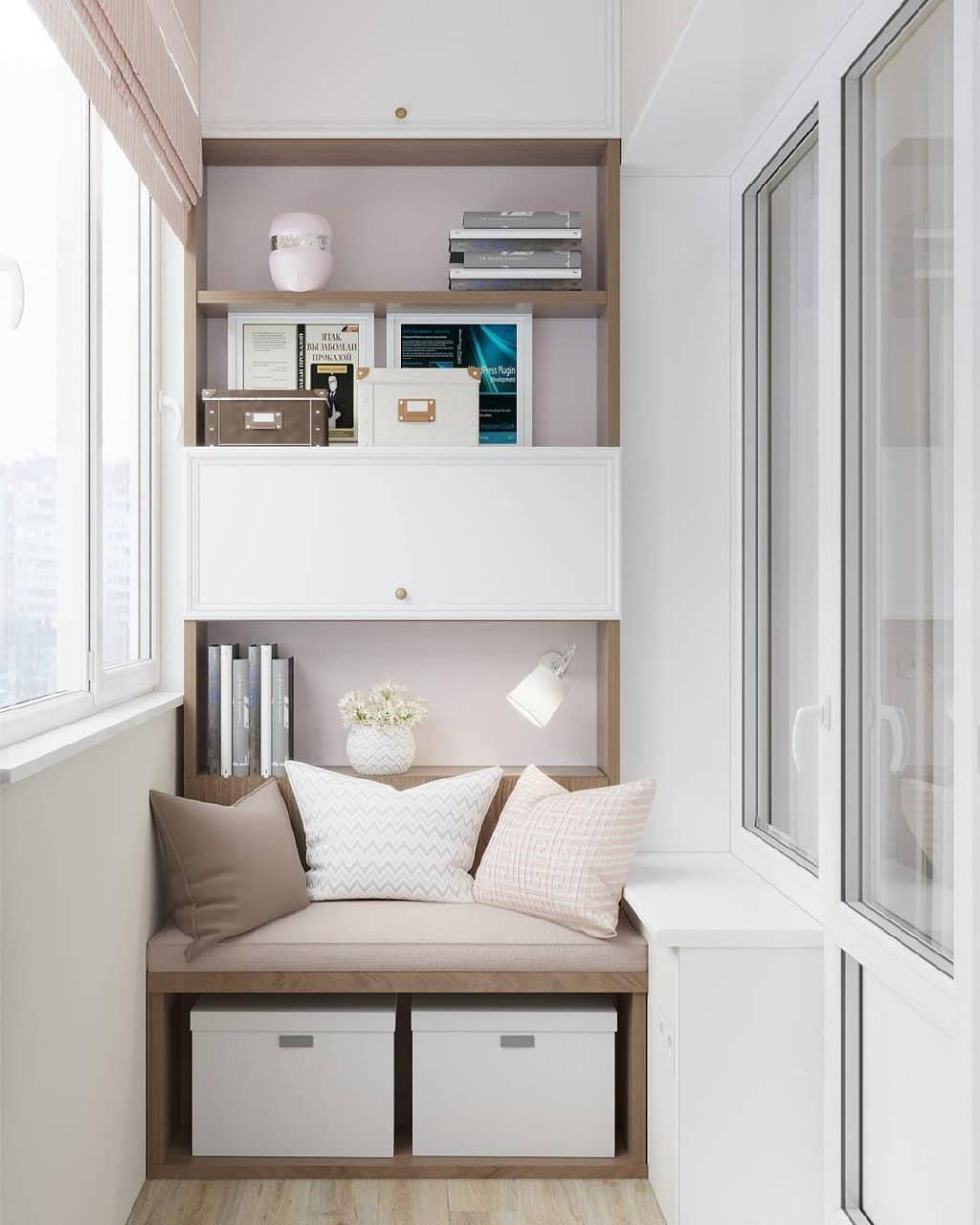 Pour les tiroirs, il est nécessaire de fournir de l'espace, tandis que l'intérieur est plus compact. Il suffit de soulever le siège pour accéder à l'espace de rangement. Un canapé sur le balcon avec une boîte de rangement convient aux personnes qui utilisent correctement toutes les fonctionnalités de l'appartement.