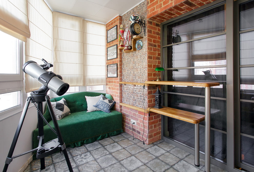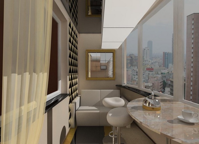 La conception design vous permet de vous adapter avec succès au style, le rendant discret et en même temps un excellent ajout pour donner du confort. Par exemple, en installant un canapé sur une loggia avec couchette, en mettant une petite commode et des étagères suspendues ou un petit téléviseur, vous pouvez créer une pièce supplémentaire dans laquelle des invités ou un enfant adulte seront logés.