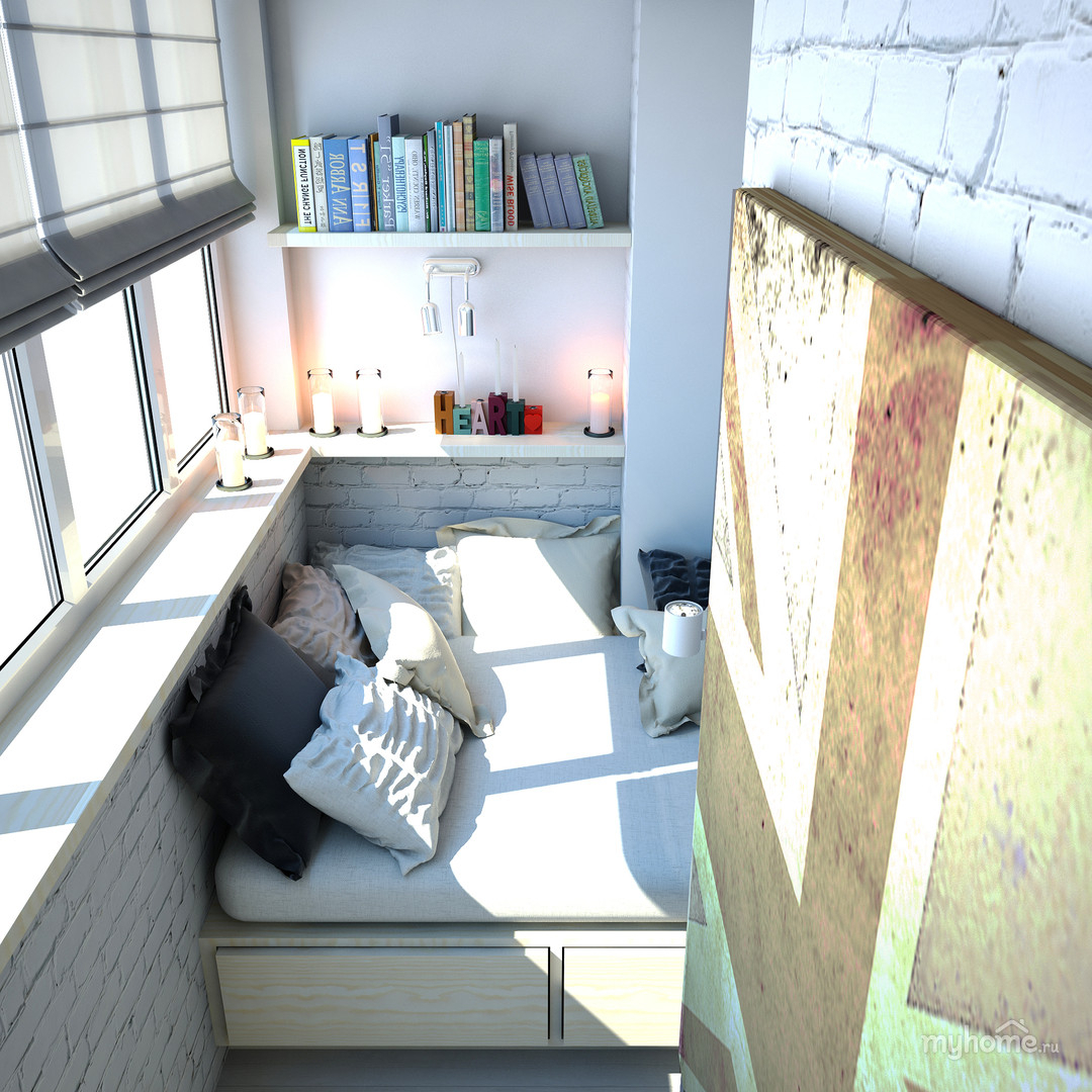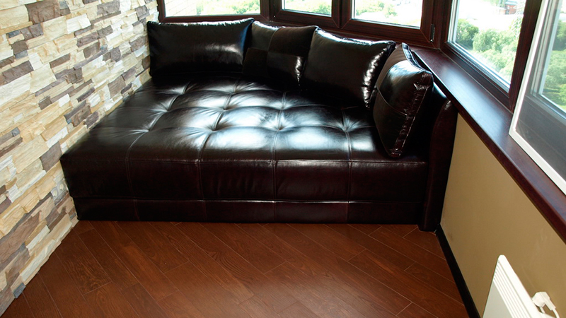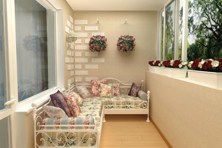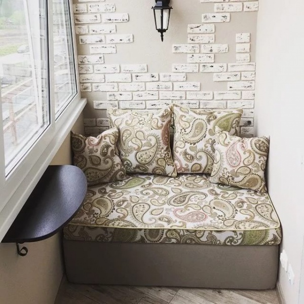 Cette option convient aux grands balcons. Il permet d'obtenir un bon repos, contrairement aux canapés coulissants, car il offre une couchette confortable avec un matelas solide. Le plus souvent, l'installation se fait sur des balcons vitrés - loggias.