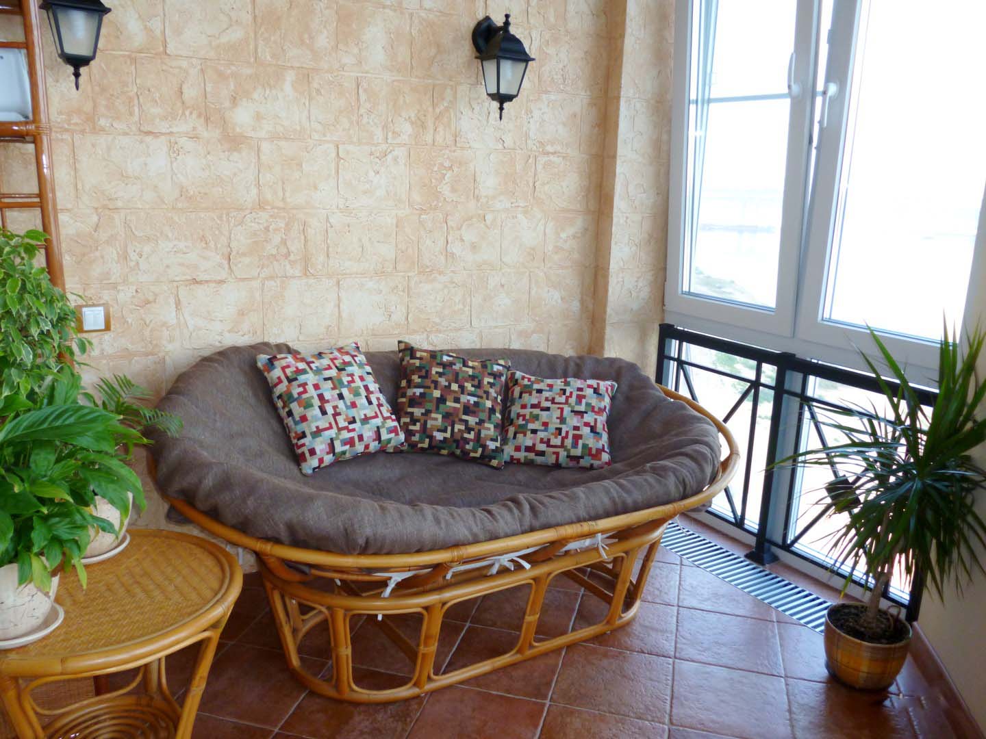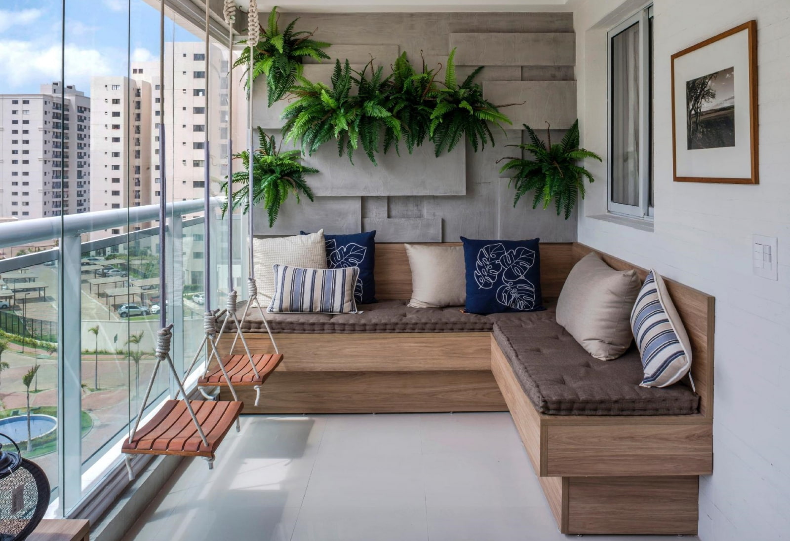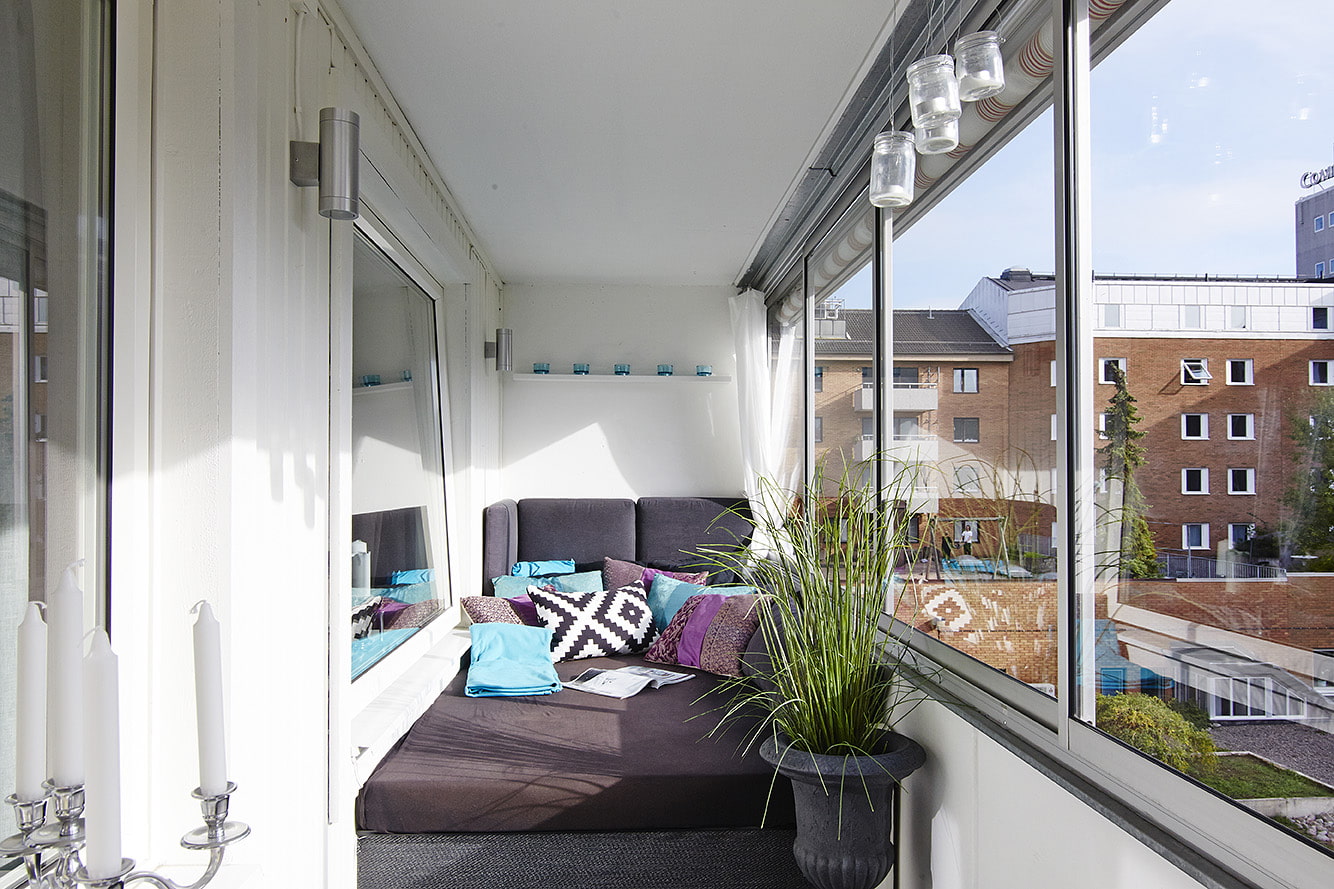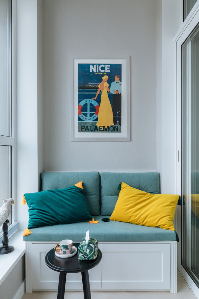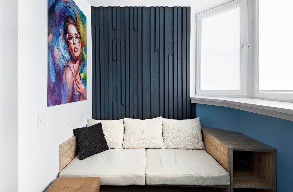 Si vous avez une encoche ou un retrait du mur sur votre balcon, vous pouvez y installer le canapé.