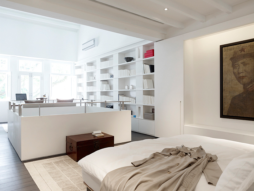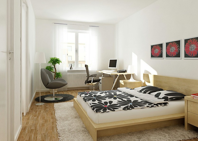Le lieu de travail peut être séparé de la chambre à coucher, en utilisant différents sols