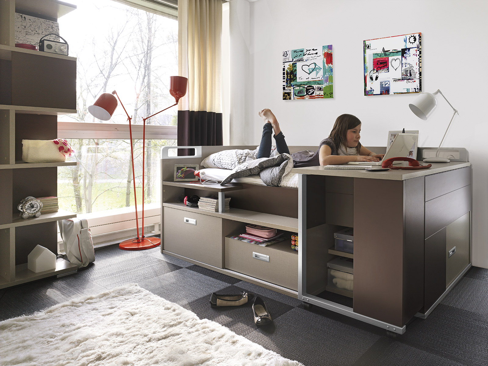 La chambre doit être divisée en deux zones fonctionnelles: la zone de couchage réelle et la zone où sera situé le lieu de travail