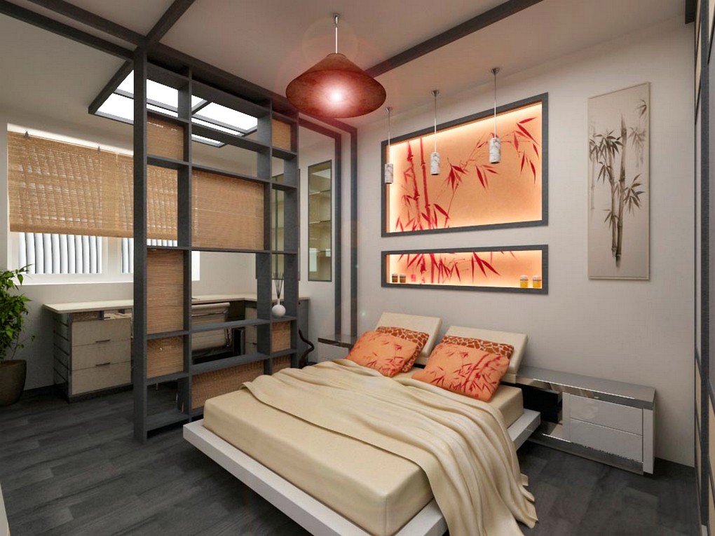 Dans un style minimaliste, les écrans portables orientaux sont une excellente option. Avec leur aide, vous pouvez facilement distinguer les zones combinées. Une caractéristique du design sera les dessins japonais à thème. Les couleurs principales seront le noir, le gris et le blanc. Le désordre et le chaos sont inacceptables pour ce style oriental.
