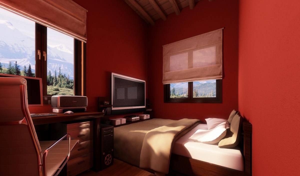 Lors du zonage avec des couleurs, les tons plus foncés sont choisis pour les murs de la partie bureau de la pièce que dans la chambre