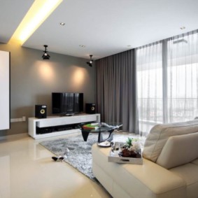 Quando si decorano le finestre della sala in uno stile minimalista, si dovrebbe dare la preferenza ai tessuti semplici con una superficie opaca