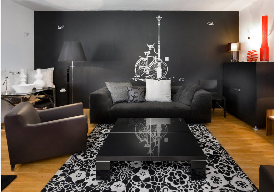 Esistono diversi modi di base per distinguere un muro in un salotto, anche se il loro numero totale dipenderà dai tipi di decorazione murale e dalle idee degli interior designer: