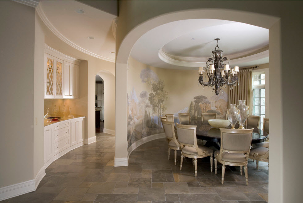 La trama naturale della pietra sembra molto impressionante in qualsiasi direzione dello stile degli interni