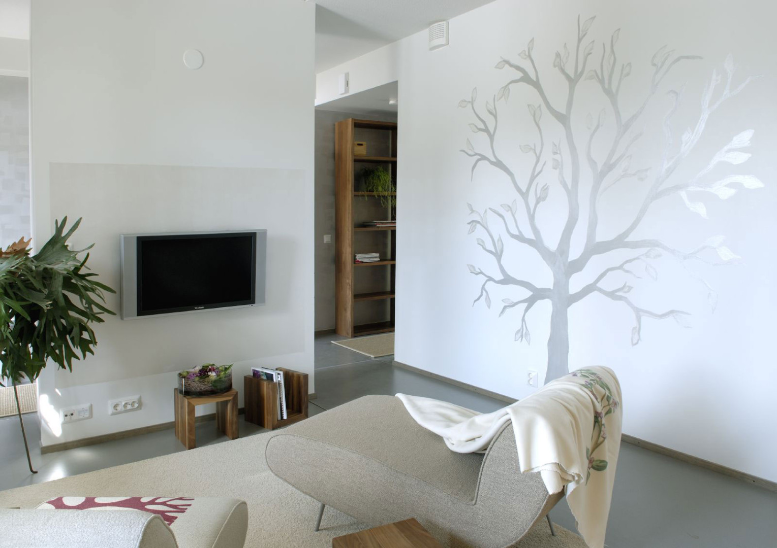 L'enfasi è sul muro, che per primo viene alla luce quando un ospite entra nella stanza, non possono essere due o più. I primi 15 secondi nella nuova stanza diventano la base per la percezione delle informazioni, tutte le impressioni successive saranno sovrapposte al giudizio già sviluppato. Non finiscono sempre l'intera parete, a volte una parte è sufficiente, tutto dipende dalle dimensioni della stanza. Secondo gli psicologi, uno spazio di lavoro adeguatamente accentuato disciplina, un luogo di riposo accentuato consente al corpo di riprendersi.