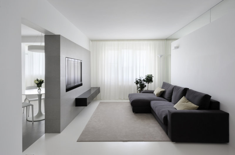 - Minimalismo. La base principale è la convenienza e niente di più. Le tonalità sono meglio prendere due di base. Il colore del soffitto e delle pareti dovrebbe essere combinato tra loro. In questo stile, dovresti usare razionalmente la stanza. C'è più spazio vuoto al suo interno, un minimo di mobili. Sedie, divani, tavoli - hanno la solita forma. Nessun ornamenti e dettagli extra. Spesso vengono utilizzati i bui al posto delle tende.