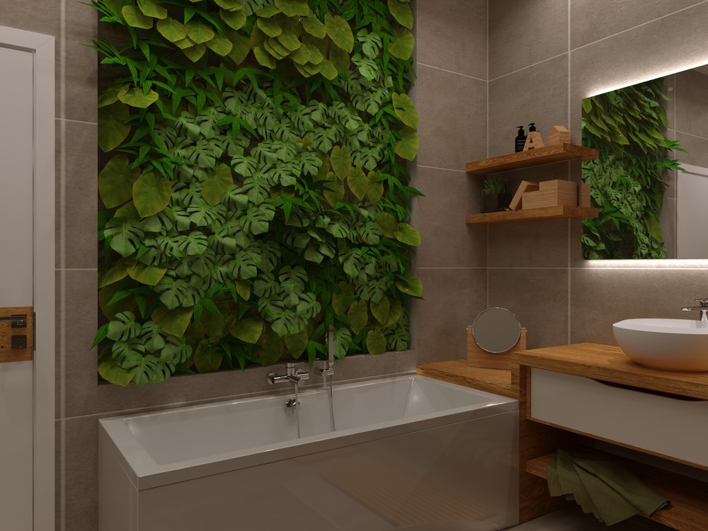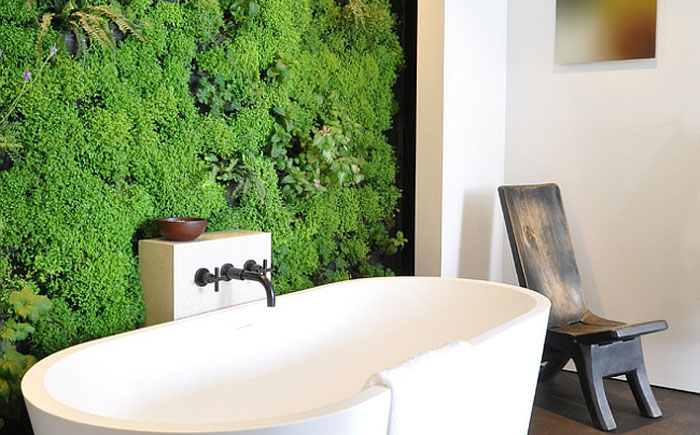 Un muro di piante viventi può essere creato anche in bagno con spazio libero