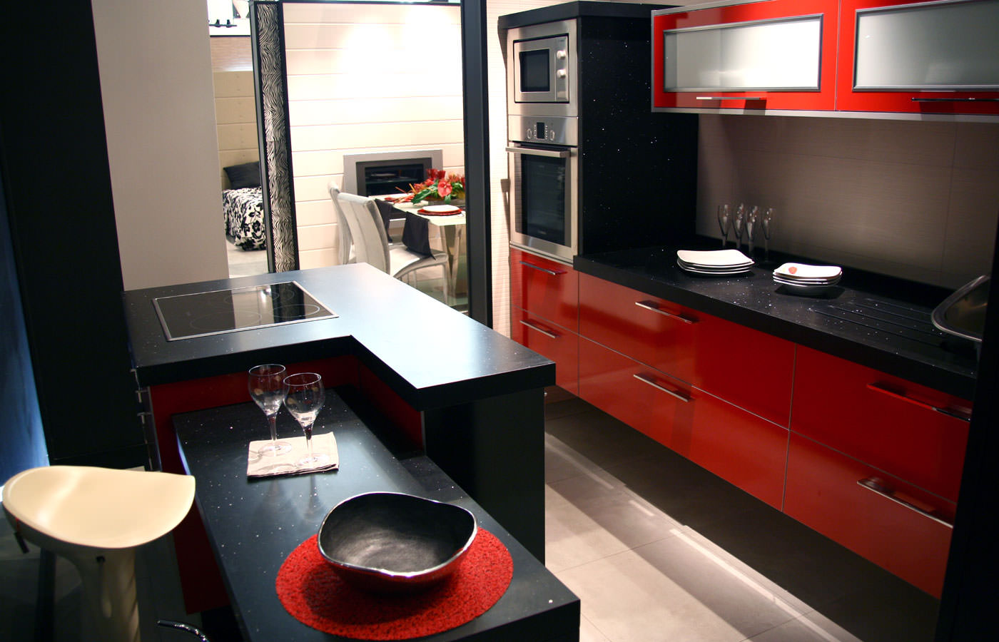 - Set da cucina rosso in alto nero in basso