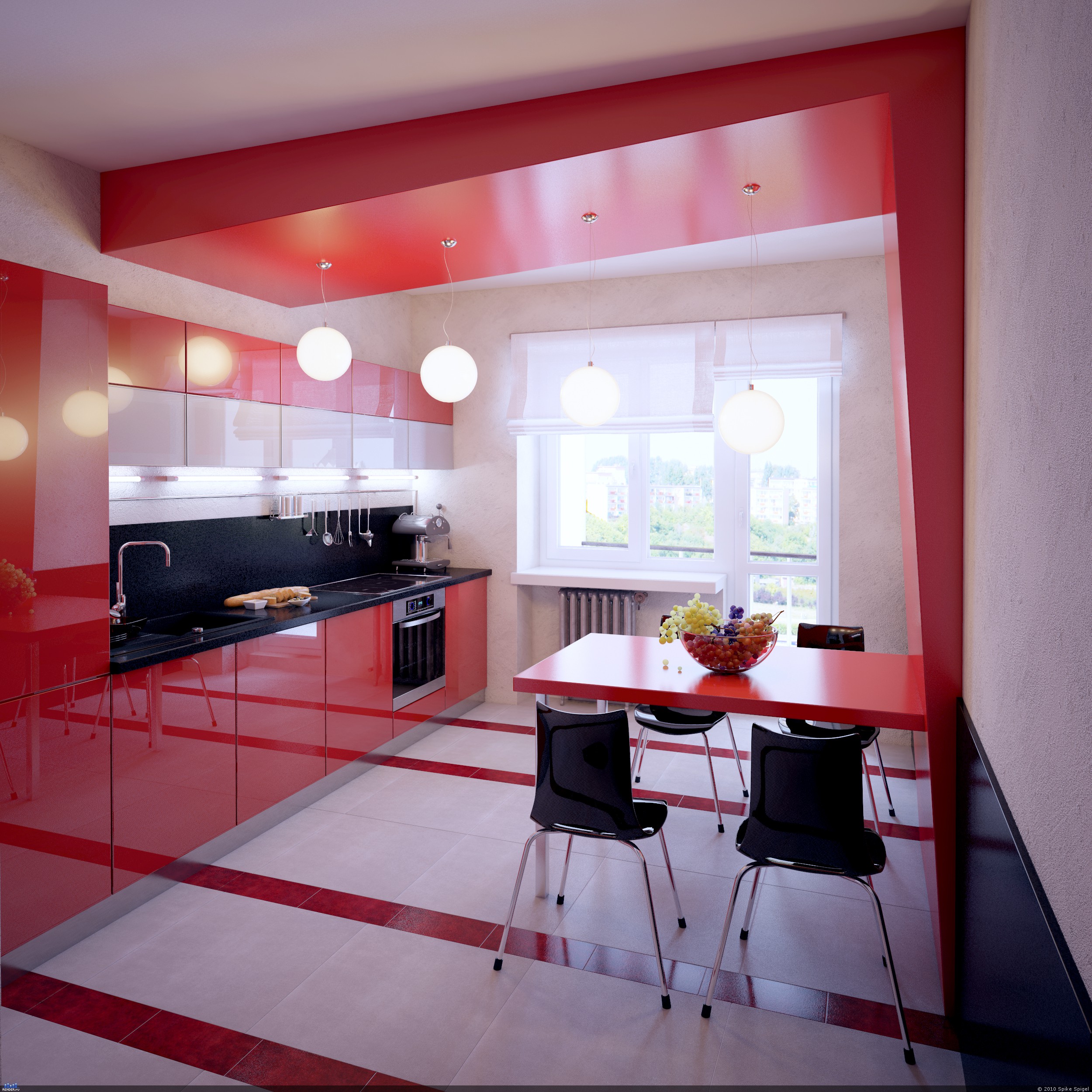 - La scelta dei controsoffitti, il design di un grembiule in una cucina rosso-nera