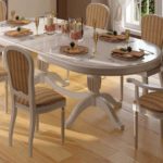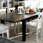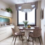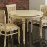 Vale anche la pena prestare attenzione al design del tavolo, perché accanto ad esso ci sono principalmente sedie da cucina, sgabelli e altri sedili. È importante che si incastrino. In primo luogo, devono essere dello stesso colore o differire tra loro non più di un tono. È consentito selezionare alcuni elementi che saranno diversi nella colorazione. Si distinguerà dallo sfondo generale e darà originalità. In secondo luogo, è importante considerare la combinazione di forme. Scegliere una forma simile o identica sarà sempre elegante.