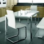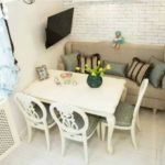 Se il design della cucina è realizzato in tonalità chiare, blu, grigie o rosa, allora le sedie bianche con sedili morbidi e uno schienale saranno una scelta eccellente. Il bianco è un colore universale che è adatto a qualsiasi interno, ad eccezione di decorato con colori vivaci.