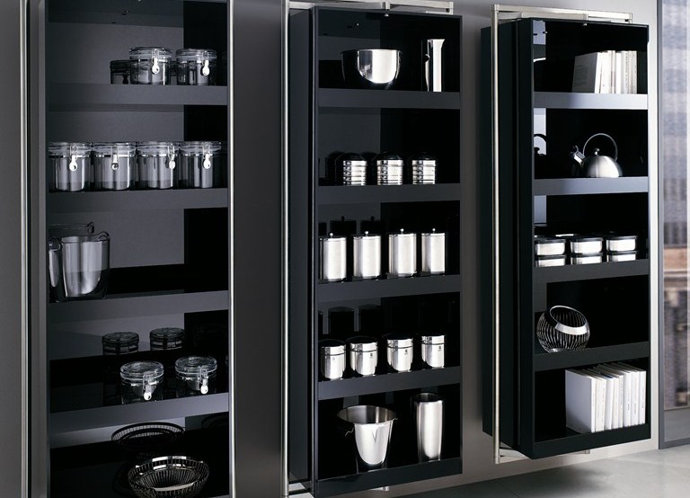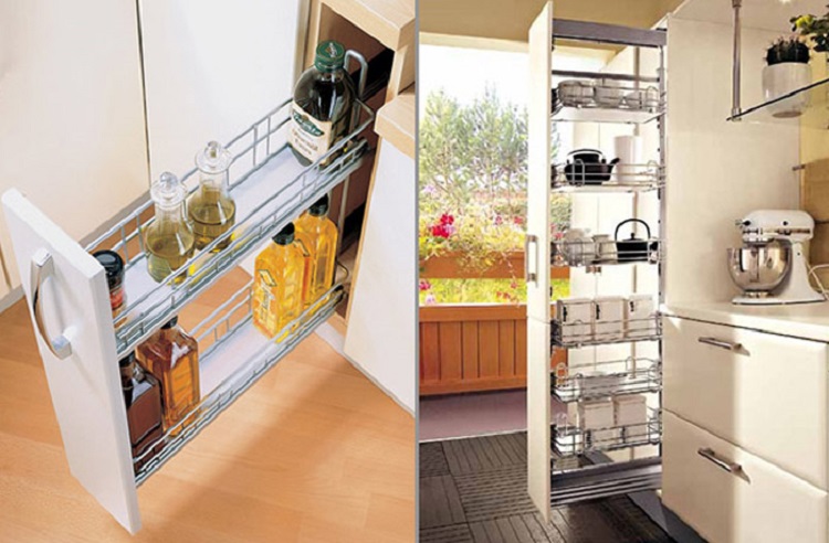 A seconda dell'idea progettuale, nonché dei parametri di una particolare cucina, le scaffalature per riporre vari oggetti possono differire nel design.