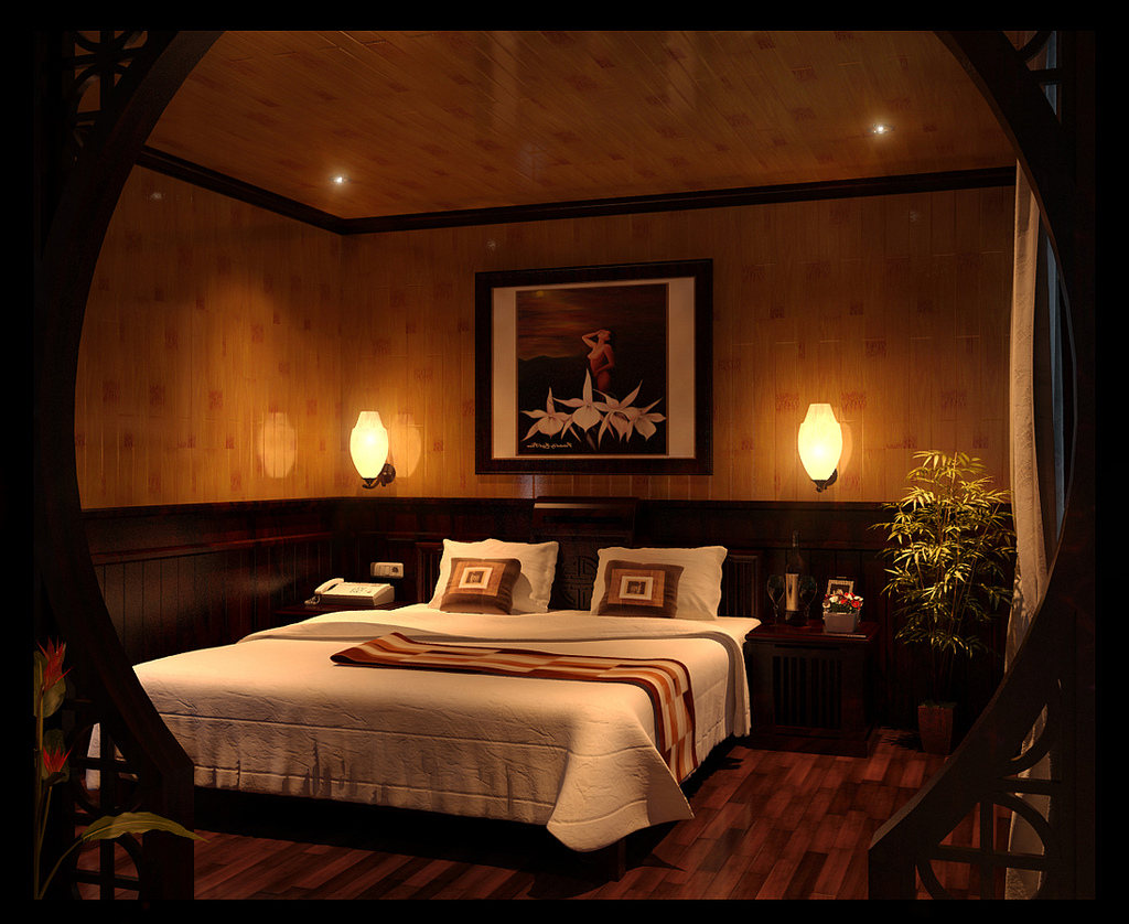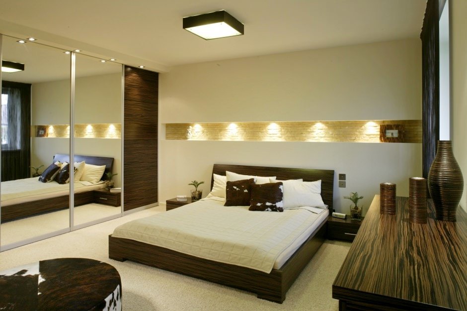 - Un componente importante è la distribuzione uniforme della luce. Trovare un letto nell'angolo lontano richiede di posizionare l'illuminazione sopra di esso. L'installazione del dispositivo nell'area di un grande specchio contribuirà a una distribuzione più uniforme della luce.