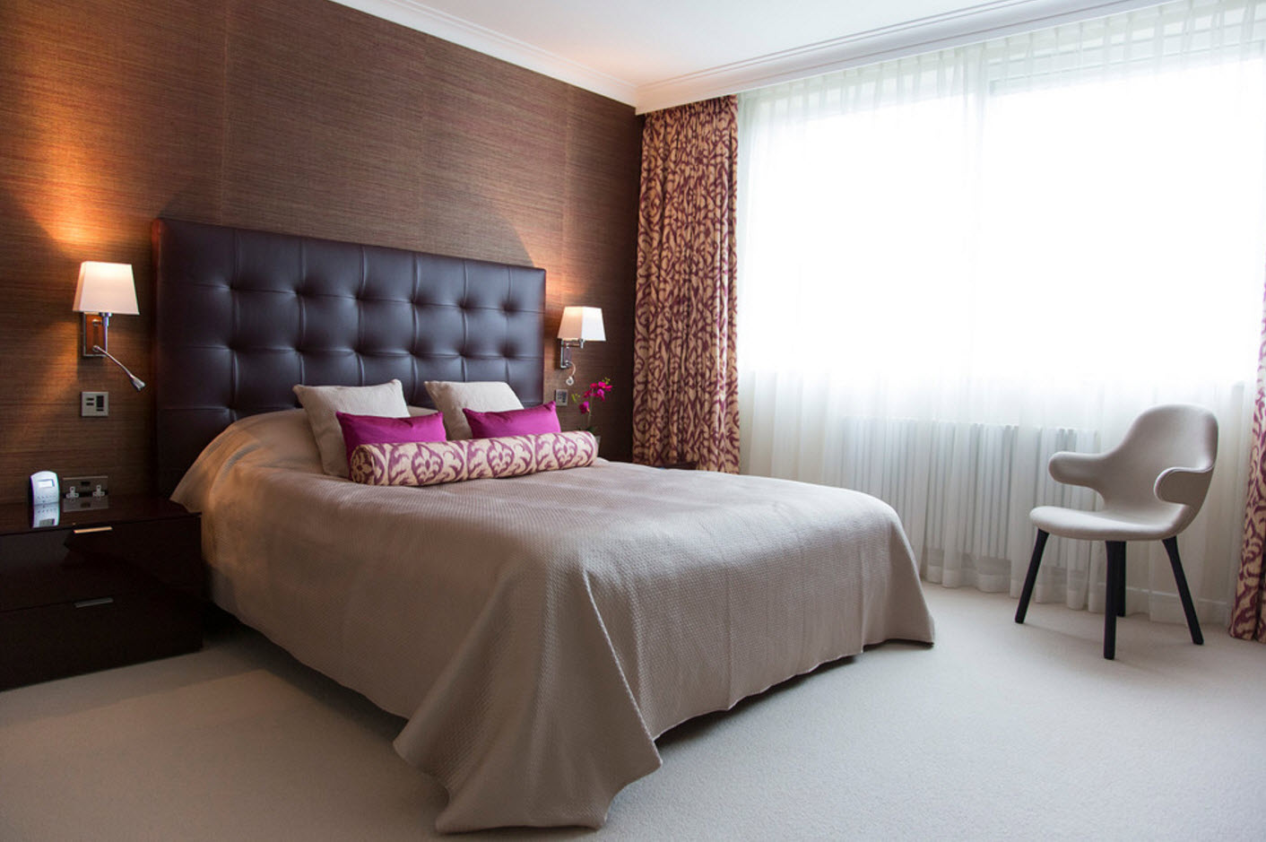 ! importante Puoi installare appliques al centro sopra il letto.Se stiamo parlando di un letto matrimoniale, è razionale posizionare due fonti su entrambi i lati, con la possibilità di una regolazione indipendente dell'illuminazione per due persone.