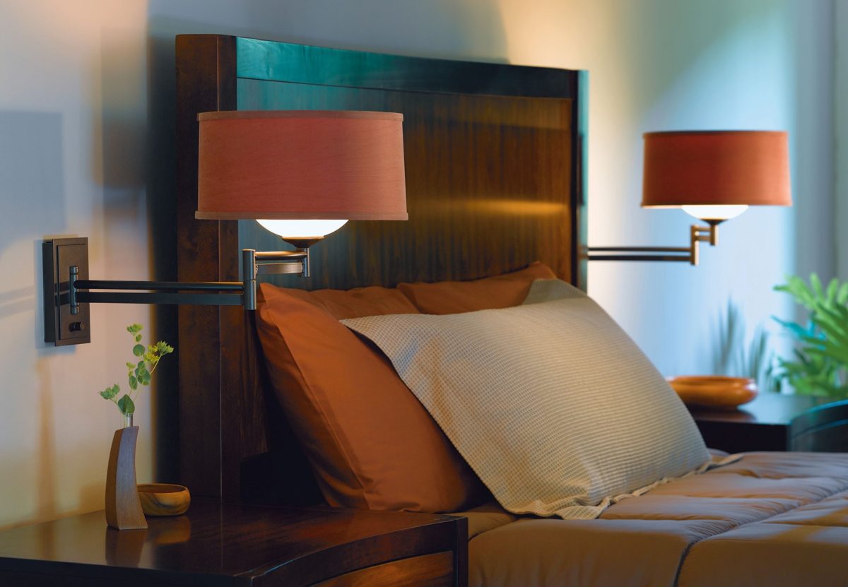 La luce locale è montata sopra il letto nella camera da letto in modo che sia possibile controllarla senza alzarsi. A che altezza appendono le applique sul letto della camera da letto? Se si prende il pavimento come punto di riferimento, l'installazione viene eseguita ad altezze da 1,2 a 1,6 m da esso. Una regola ha una tale diffusione a causa di diversi fattori.
