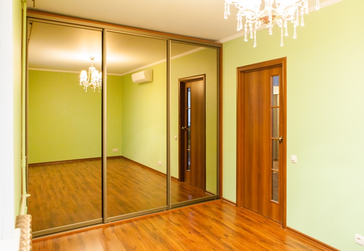 Un armadio scorrevole con uno specchio è buono in quanto ti consente di espandere visivamente lo spazio della stanza.