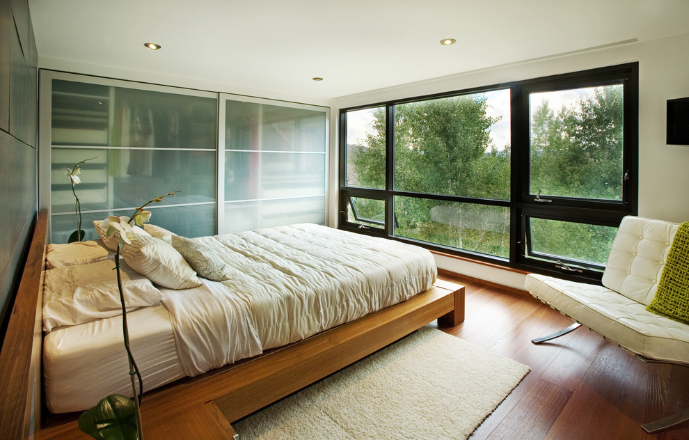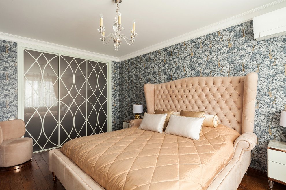 La camera da letto, come sala relax, ha un aspetto migliore con colori luminosi, calmi e tenui. Sfumature di latte, pesca, grigio chiaro sono ben percepite. Anche il numero di colori gioca un ruolo. Un guardaroba solido sembra piuttosto noioso e noioso.