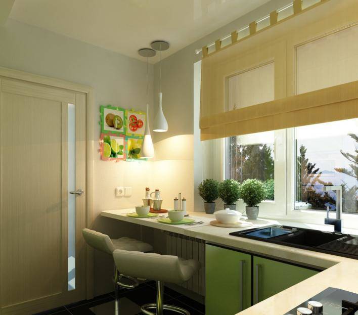 Ils sont situés le long des murs et remplacent avec succès les tables de petit déjeuner traditionnelles dans les petites cuisines, économisant de l'espace et facilitant la perception visuelle de la pièce.