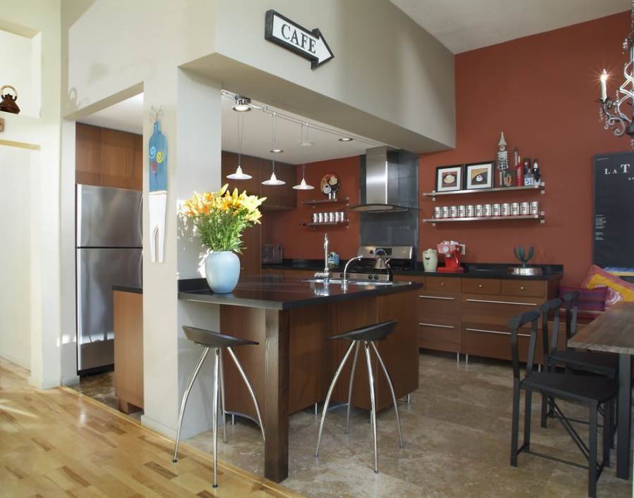 Comptoir de bar dans la cuisine: avantages et inconvénients