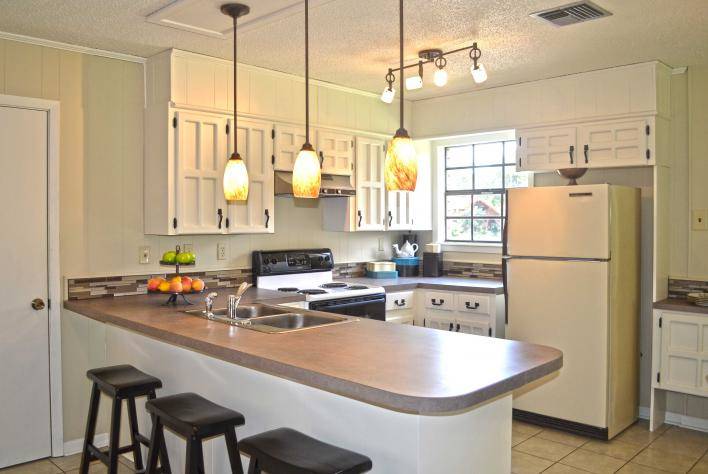 Conception d'une petite cuisine avec un bar de petit-déjeuner: options d'hébergement