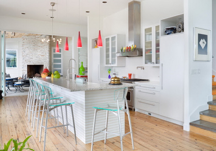 Un comptoir de bar sur pied est une option intéressante pour rendre votre cuisine mémorable et lumineuse.