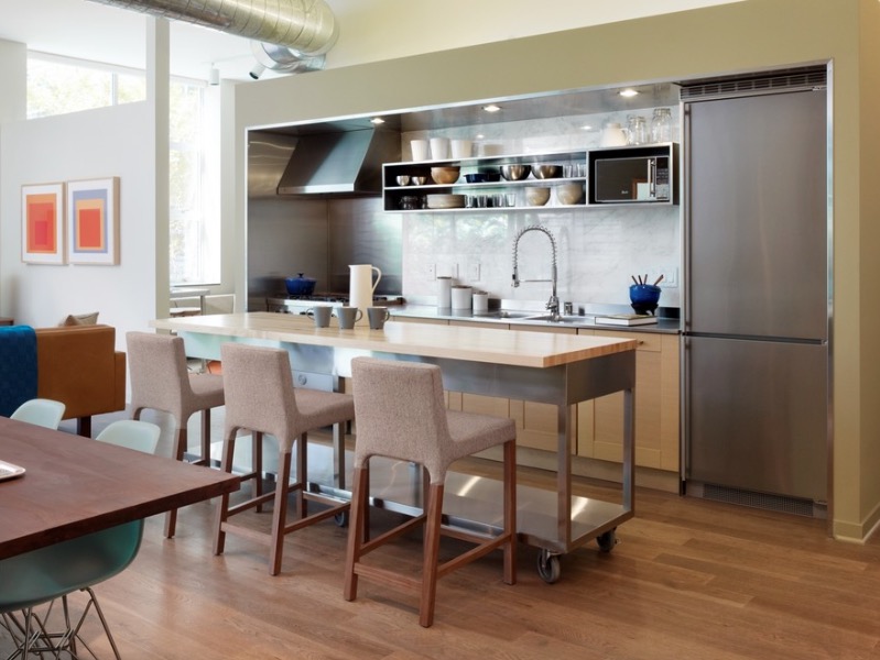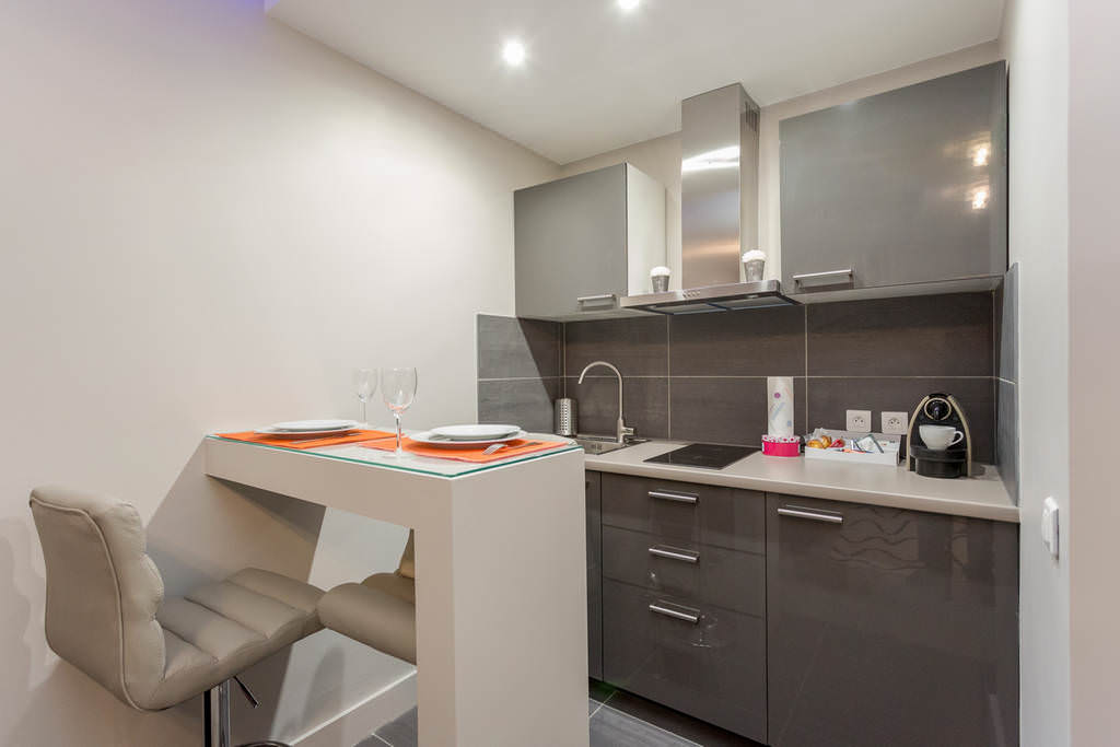 Les propriétaires de cuisines miniatures préfèrent de plus en plus les comptoirs de bar, ayant une salle à manger et une section de cuisine sur eux, au lieu de groupes de restauration à part entière.