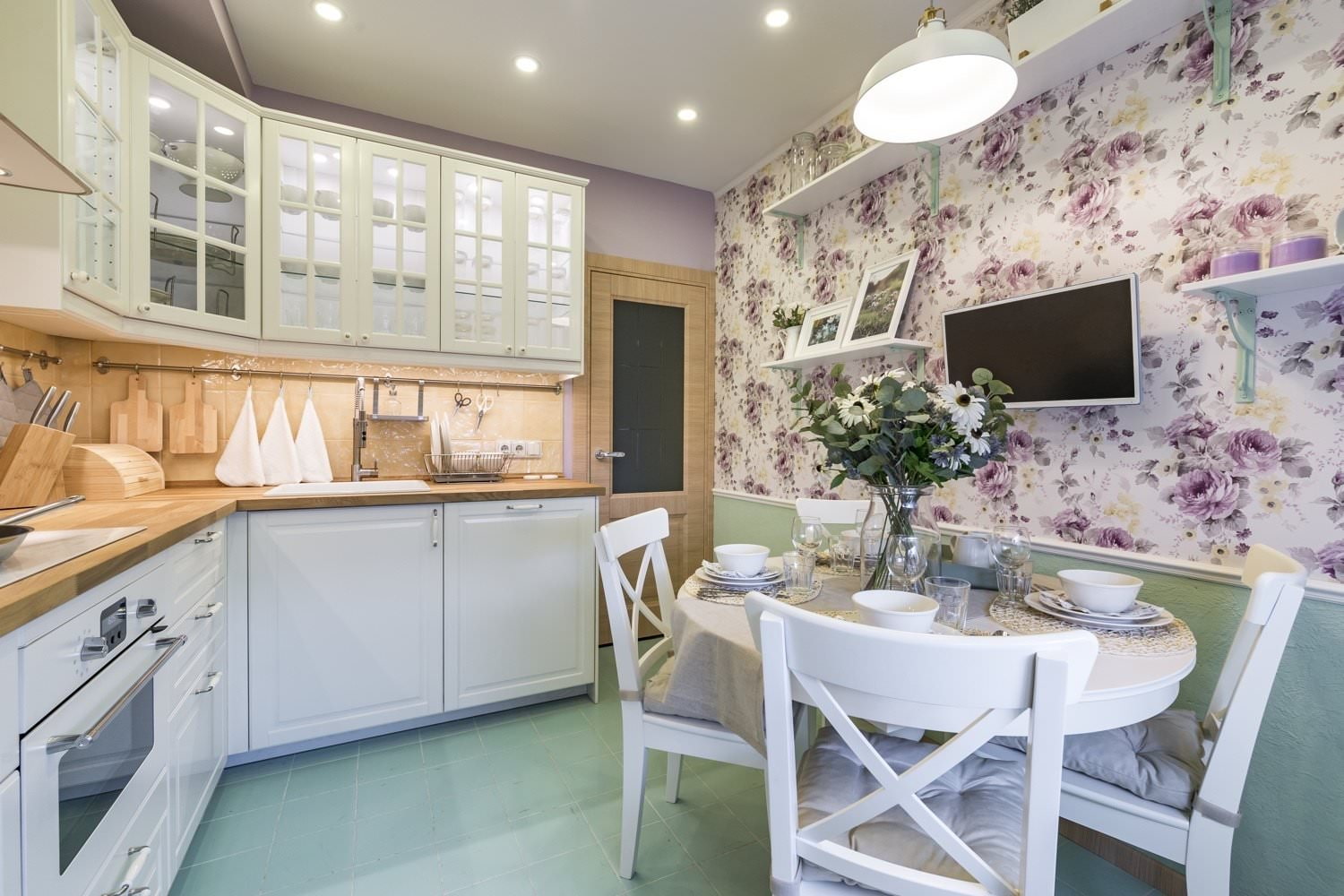 - les verts frais avec du blanc incarnent le triomphe de la vie, une excellente option pour les amateurs d'exotisme oriental, d'éco-style et de solutions modernes.