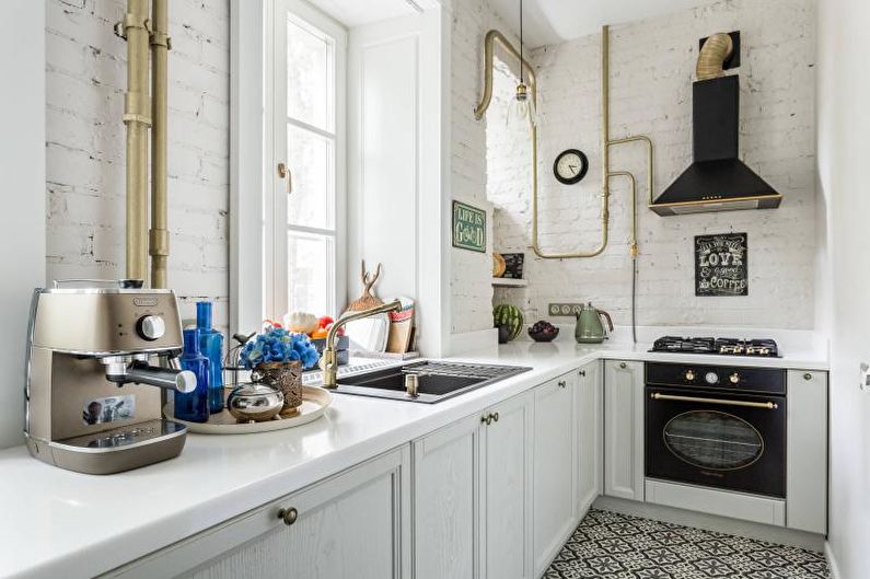 - Revue vidéo d'une vraie cuisine en blanc d'une superficie de 8 mètres carrés. m