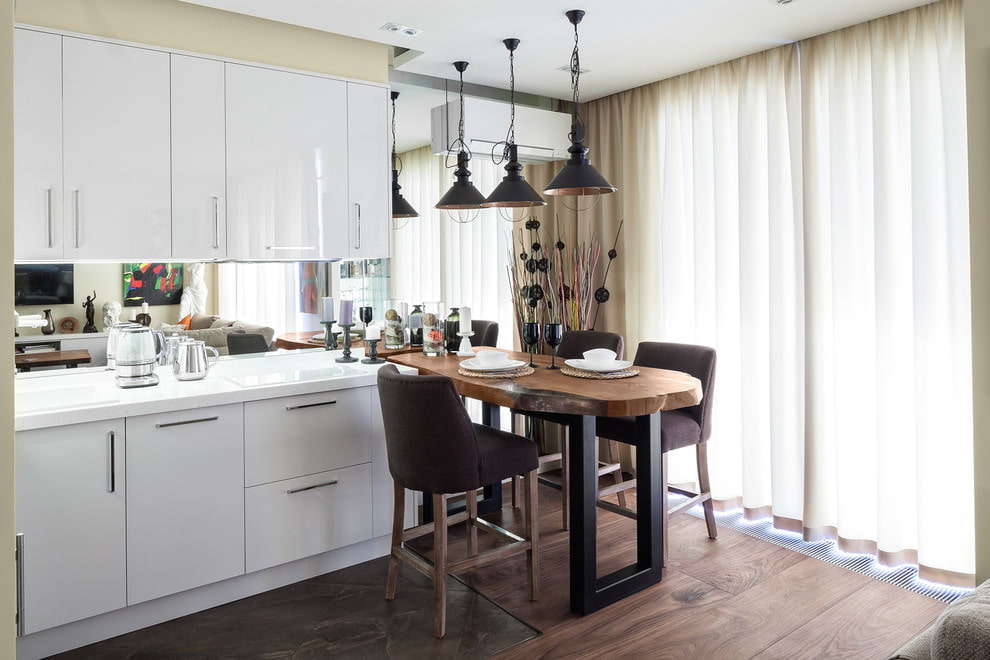 Une telle conception était autrefois le signe d'une aristocratie raffinée et d'un luxe sophistiqué. Mais peu de gens réalisent que c'est le meilleur qui puisse être pensé pour améliorer l'éclairage de la cuisine du côté nord de la maison dans la zone climatique, où il y a peu de soleil.