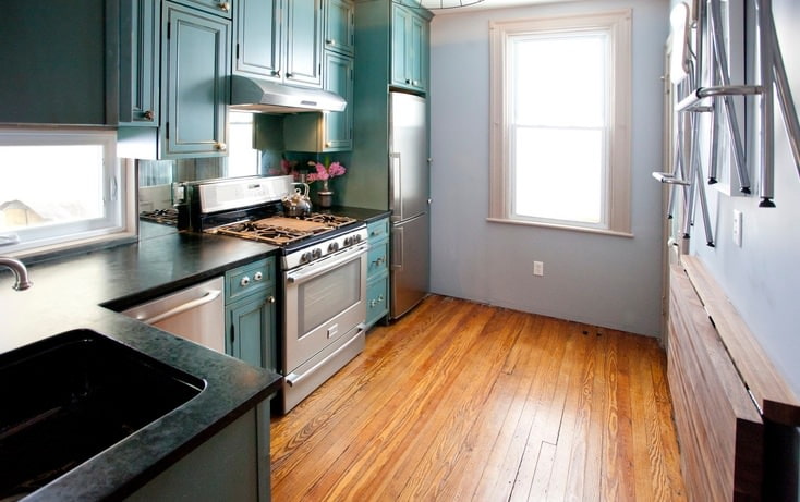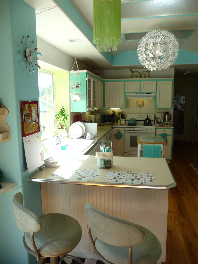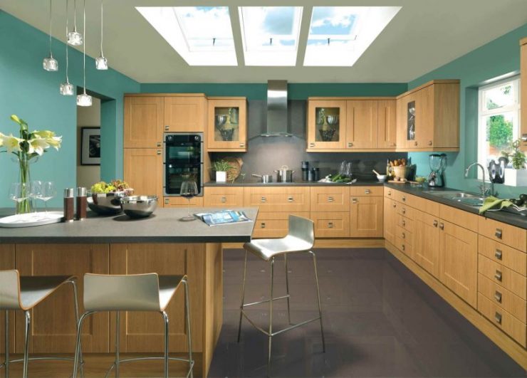 Plafond dans une cuisine turquoise