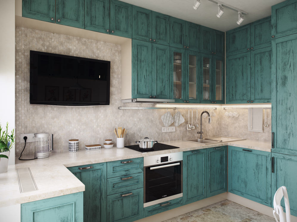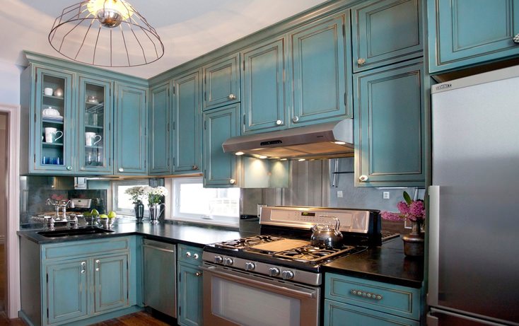Caractéristiques de la finition de la cuisine turquoise