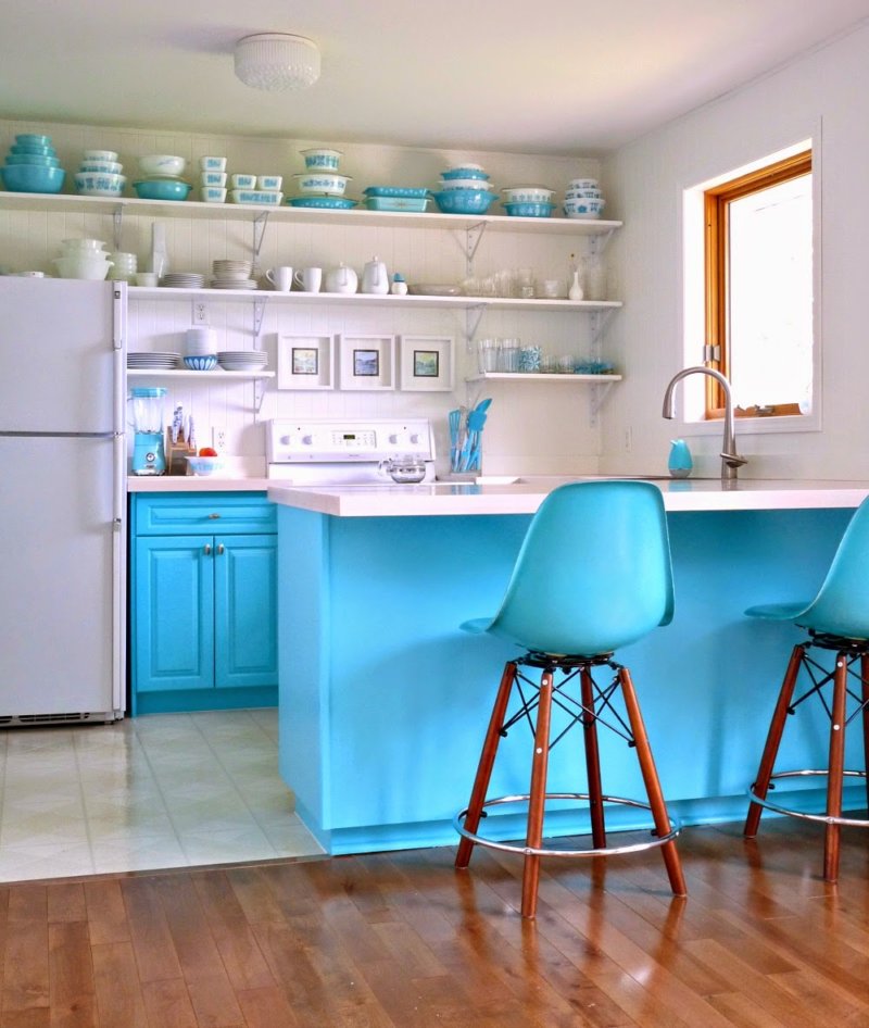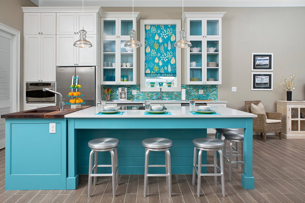 Afin d'imaginer toutes les options de la cuisine turquoise, vous devriez considérer toutes les photos présentées.