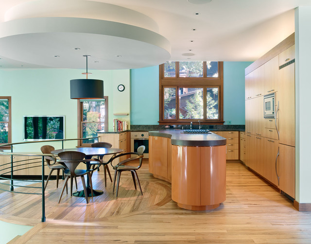 Faire une cuisine turquoise dans le style Art Nouveau nécessite des surfaces brillantes et au maximum arrondies. Ici, contrairement au style moderne, il n'y a pas de lignes angulaires strictes, tout doit être plus lisse et plus doux. Par conséquent, en choisissant un ensemble de cuisine turquoise, vous devez privilégier ceux qui ont des coins arrondis. Les surfaces avant de la façade ne doivent pas comporter d'éléments sculptés. Mais des tirages dans la modernité sont souhaitables, pour achever la formation de l'image.