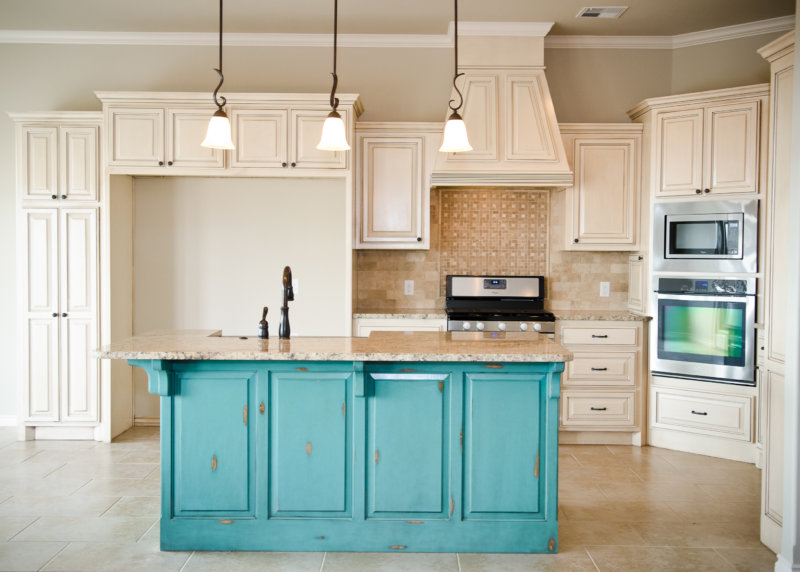 Cuisine de style classique turquoise et beige