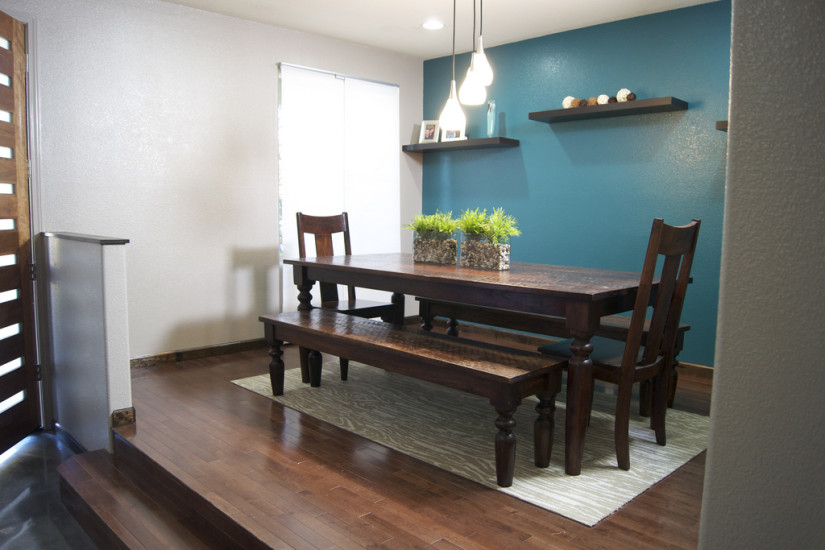 Étant donné que la teinte bleu-vert elle-même est très intense, vous ne devez pas trop l'utiliser. Il en suffira un, grand dans sa surface.