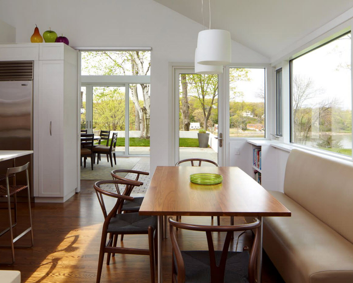 La baie vitrée augmente considérablement la superficie de la cuisine et ajoute de la lumière