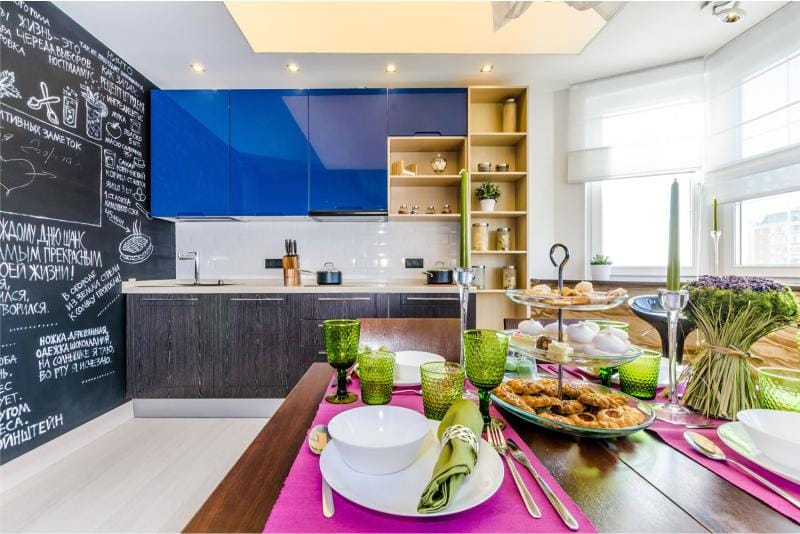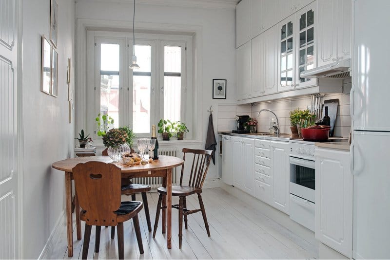 - Une cuisine-salle à manger combinée est la meilleure option pour ceux qui n'ont pas de salle séparée pour manger. Permet une utilisation maximale de l'ensemble de la cuisine.