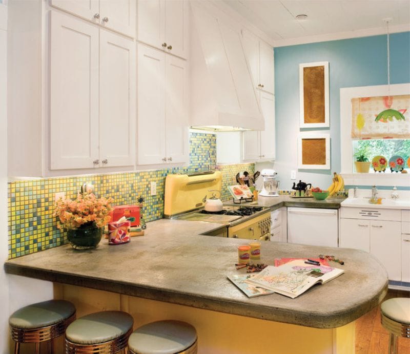 Dans une cuisine de 14 mètres, l'îlot peut jouer le rôle à la fois de salle à manger et de bureau