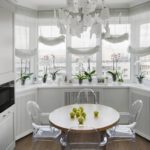 Superficie 14 m2 m. - assez pour la cuisine. De telles dimensions contribuent à l'incarnation d'idées extraordinaires, à la mode et fraîches en design d'intérieur. Toute façon de placer le casque et la table à manger serait appropriée. Comptoirs de bar, îlots, canapés - tout cela est disponible pour une grande pièce.
