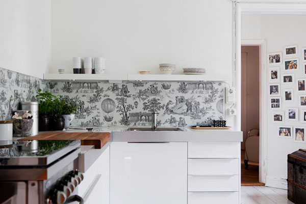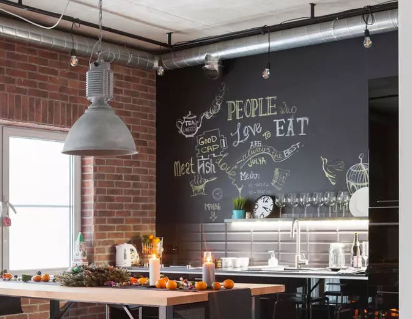 Des murs libres et assez minimalistes s'intègrent à l'intérieur, pas dans tous les styles. Il est difficile d'imaginer un ensemble pompeux de style baroque, des colonnes et un lustre chic en fer forgé combiné à un mur nu.Le baroque est toujours mal combiné avec les surfaces de travail en raison de sa saturation avec des motifs et des nuances claires, souvent blanc neige, en particulier dans le cas d'une surface de travail aussi vaste et ouverte.
