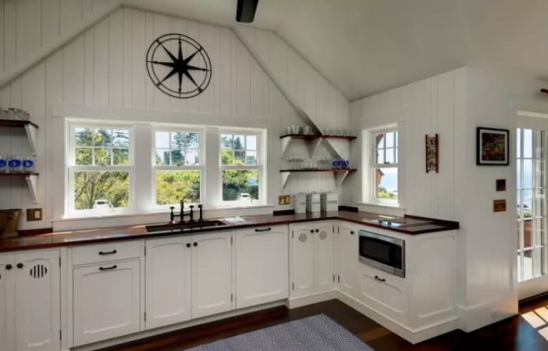 Un des avantages d'une cuisine sans placards supérieurs est le moindre coût de l'unité de cuisine