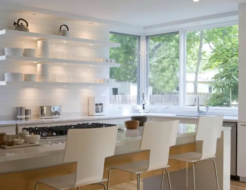 Avec la bonne approche, une cuisine sans armoires suspendues se révèle confortable, élégante et attrayante.