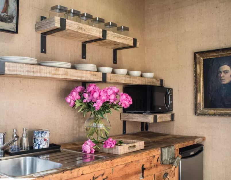 Tout le rustique a fière allure sans armoires suspendues.