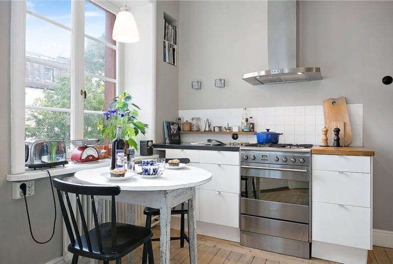 - L'espace. Parfois, un espace supplémentaire est vital, en particulier ce problème est ressenti de manière aiguë par les propriétaires de cuisines sombres. Le rejet de la moitié de l'ensemble de cuisine libère une partie substantielle de l'espace. De plus, visuellement la pièce semble beaucoup plus spacieuse.